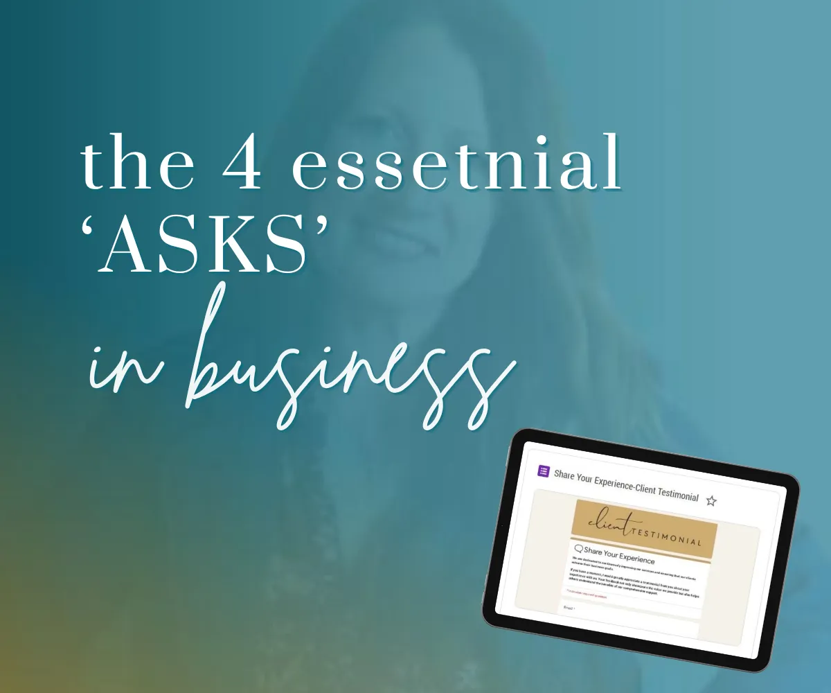 To achieve sustainable growth, we need to master the 4 essential 'ASKS' in our business. Ask for the Sale, Testimonial, Referral, and Feedback on how you served them or your products. Without all 4 working together, we risk misaligning our growth process! Grab my 2 FREE done for you Google forms.